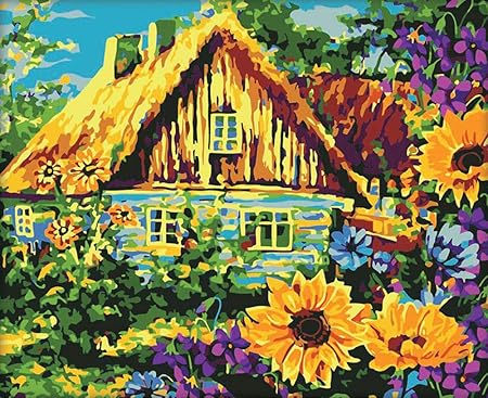 DIY Acrylic Painting Oil Painting Digital Painting Techniques for Beginners Paint by Numbers Kit with Brushes and Paints - Garden Cottage - with frame-16x20 inch: Amazon.co.uk: Kitchen & Home