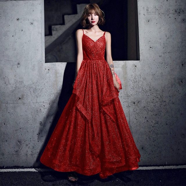 Engagement Bride Evening Dress 2020 Spring Off The Shoulder Appliques Sequines Honorable Long Satin Traditional Red Dress Cntraditionalchineseclothing Com