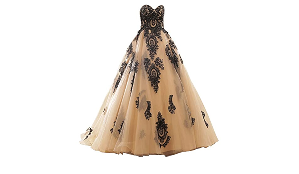 Amazon Com Womens Vintage Black Lace Strapless Wedding Dress Quinceanera Prom Gown Champagne Us16 Clothing