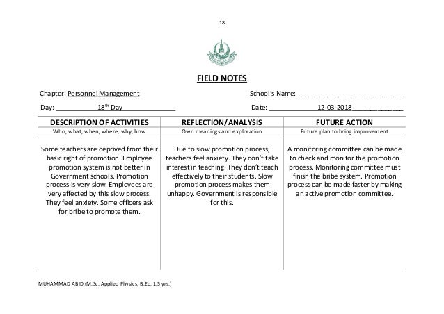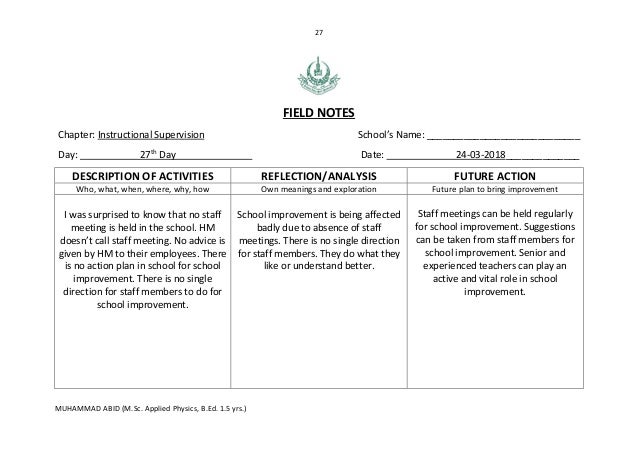 Practicum report (field notes and action plans)